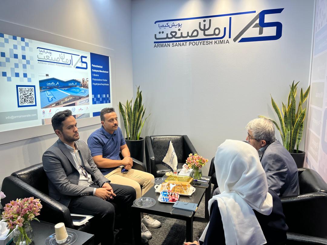 حضور روسای بخش فرایند و رئیس مجتمع پتروشیمی میاندوآب در غرفه آرمان صنعت پویش کیمیا، زیرمجموعه نانوپویش کیمیا در نوزدهمین نمایشگاه ایران پلاست