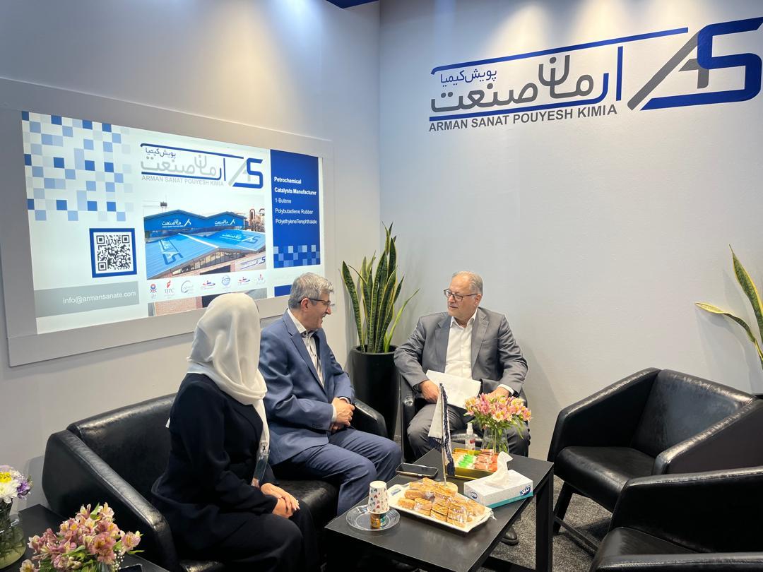حضور مدیر تولید شرکت صنایع پتروشیمی خلیجفارس و مدیرعامل شرکت پتروشیمی اروند از غرفه شرکت آرمان صنعت پویش کیمیا زیرمجموعه شرکت نانو پویش کیمیا در شانزدهمین نمایشگاه بین المللی ایران پلاست